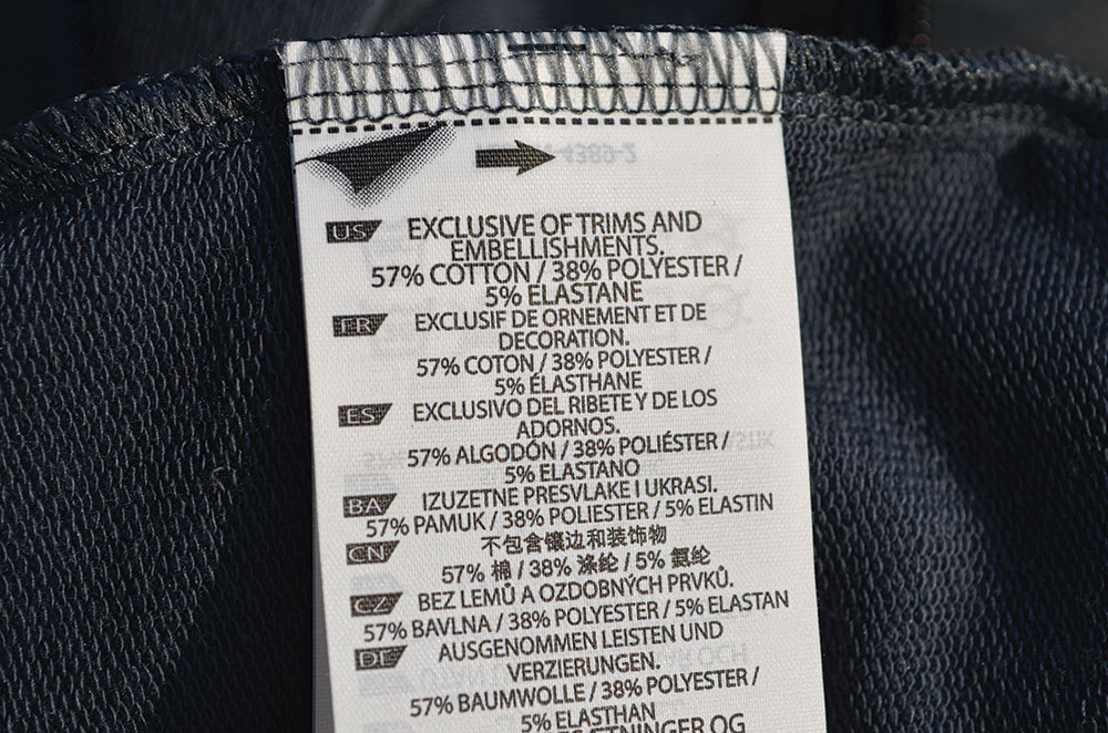 - Material: 57% cotton/38% polyester/5% elastane