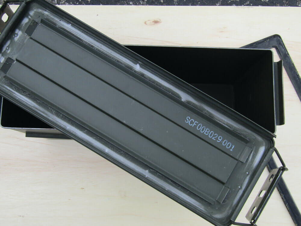 However, an ammo can must be modified slightly to convert it into a suitable electrostatic shield: The sealing rubber gasket must be removed from the lid and then modified, and the paint underneath it must be removed by scraping or sanding.