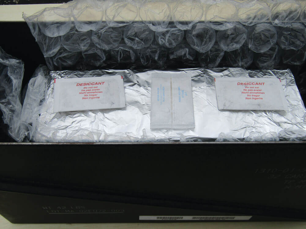 Items too large to be placed in a container can be left in their original packaging, but wrap multiple layers of aluminum foil around the outside. The foil edges should overlap to ensure electrical continuity. Finally, a layer of plastic (plastic wrap, heavy-duty trash can liner or similar) can be placed over the foil to protect it from tearing.
