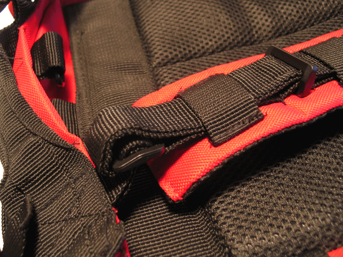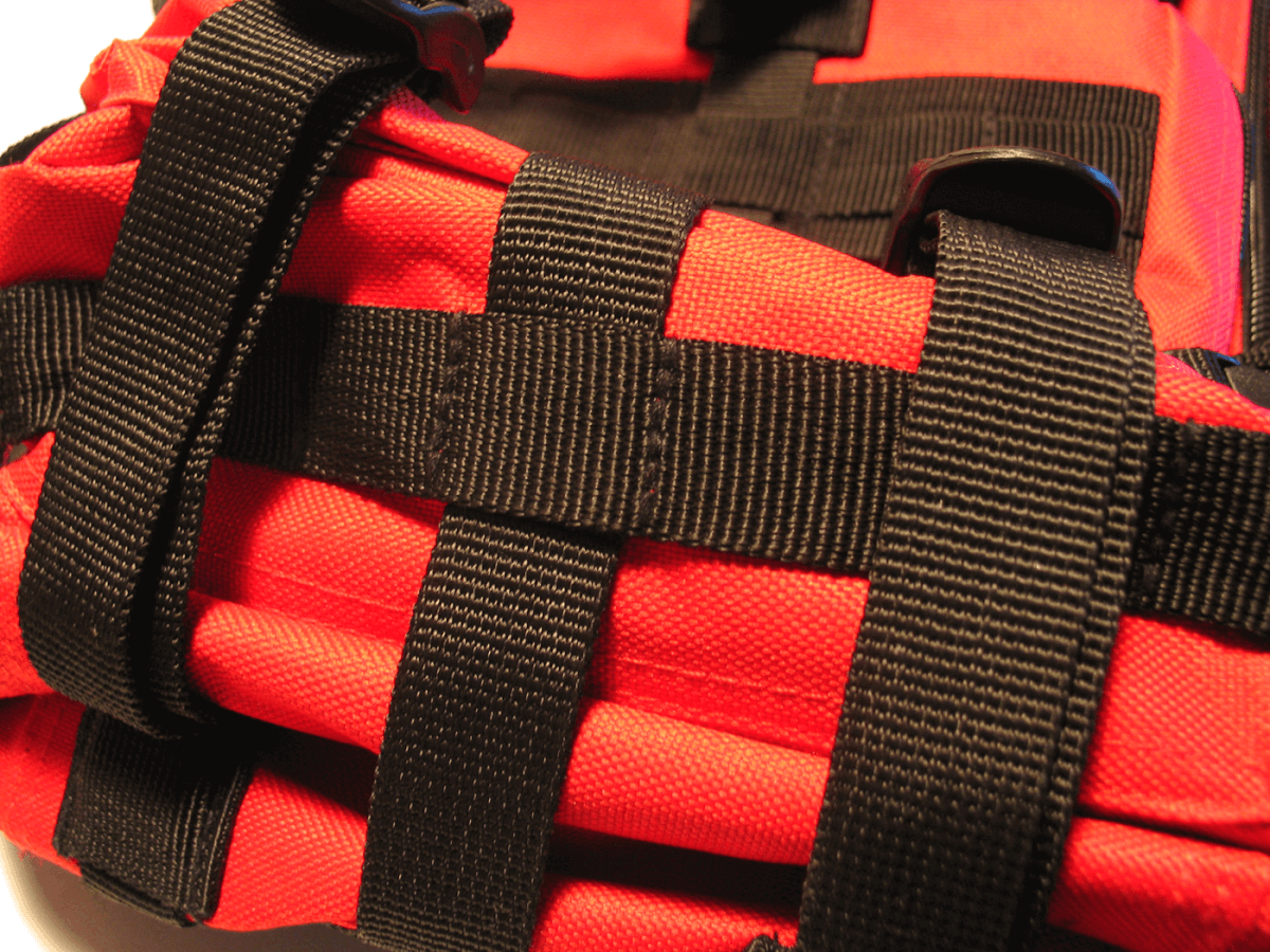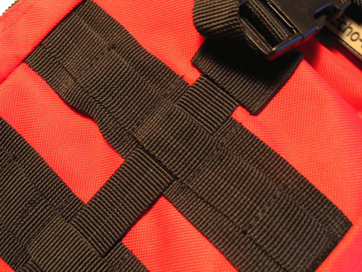 The bag with all of its contents weighs about 16 pounds, but much of that weight comes from the 2.5 liters of water pouches that are included. The Condor Outdoor Assault pack is a very sturdy pack, and there are a number of colors available: black, red, and coyote tan are all standard, while A-TACS and multi-cam patterns are offered as a $40 option on Echo-Sigma’s site.