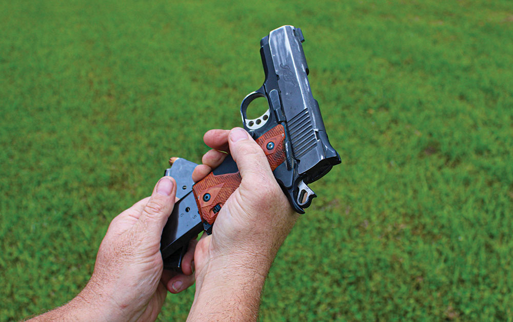 After seating the magazine with a firm “bump,” pull back the slide and release it to get back into the fight.